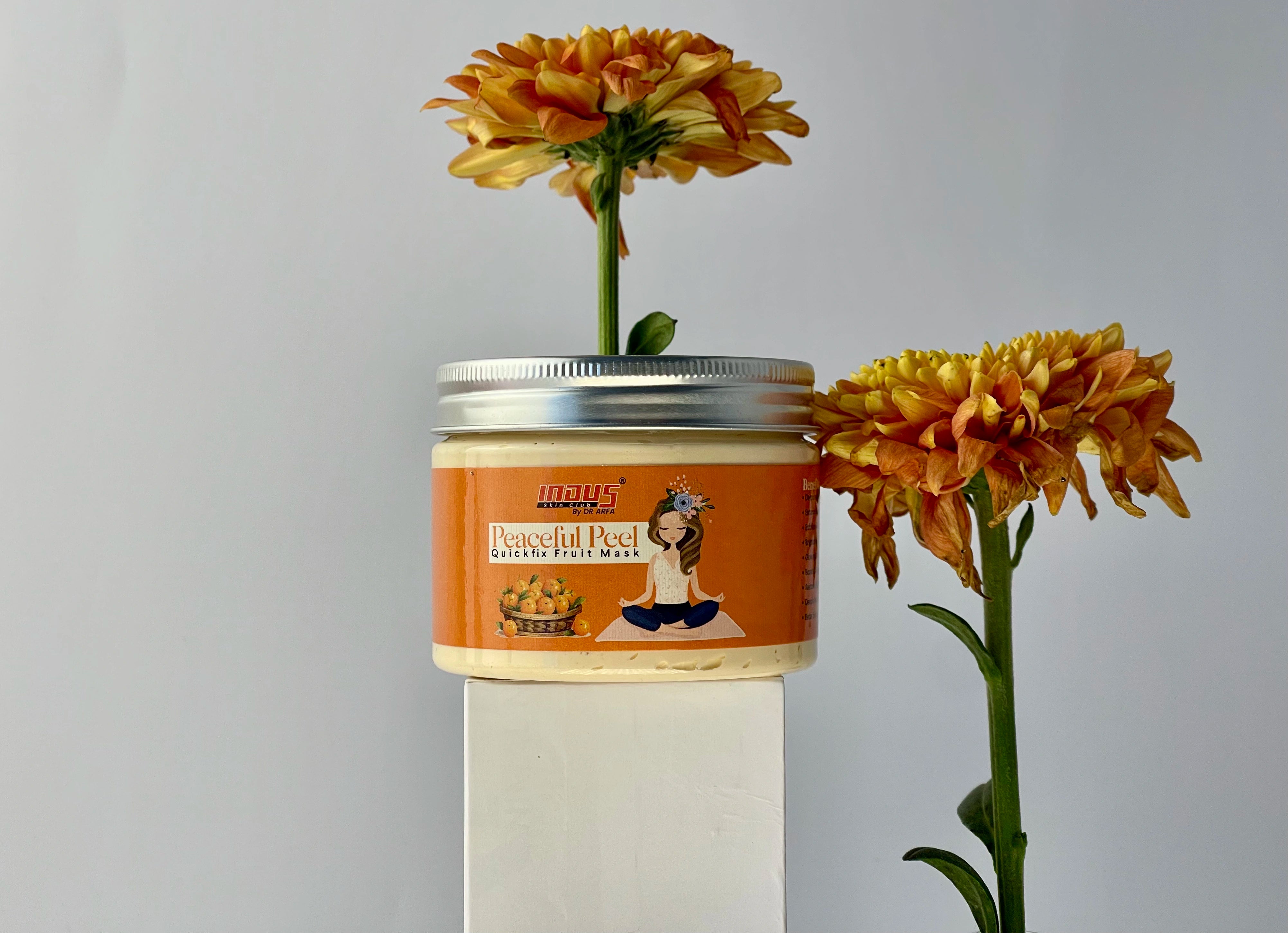 Dr. Arfa’s Peaceful Peel Quickfix Fruit Mask is crafted with natural fruit extracts and skin-loving ingredients to cleanse deeply, exfoliate, and rejuvenate tired skin. This fruit mask combines the power of papaya, lemon, and orange extracts with kaolin clay and gentle pumice to sweep away impurities and dead skin cells. It boosts collagen, enhances circulation, and restores brightness for a glowing, youthful appearance. Ideal for all skin types, it’s the ultimate pick-me-up for instant radiance and hydration.